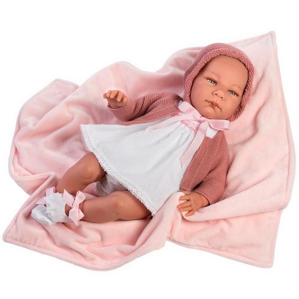 А дрешките й са толкова стилни и нежни - рокличката, гащичките и обувките й са бели с фини бродерии и дантели, куклата има плетена жилетка и шапка в коралов цвят. Комплектът съдържа и меко розово одеало, а също така и сертификат за раждане на кукла-бебе Кандела.