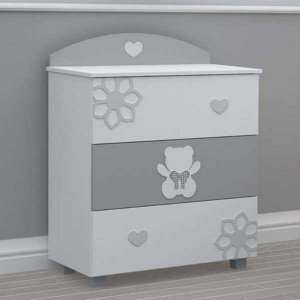 Функционален скрин с 3 просторни чекмеджета, който се оказва незаменим помощник в съхранението на всичко най-необходимо за бебето.