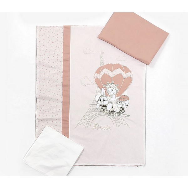 BC/Луксозен бебешки спален комплект от 4 части с елегантни 3D декорации и изящна бродерия от колекцията Paris на Bambino Casa. Креативен и функционален дизайн, създаден с внимание към всеки детайл! Moтиви – вълнуващо приключение на нашите приказни герои в Париж!