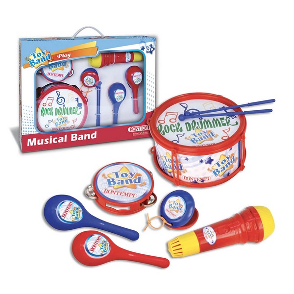 CD/191316Музикален комплект, състоящ се от: 1 барабан с 2 пръчки, 1 тамбура, 1 микрофон и 2 маракаси.