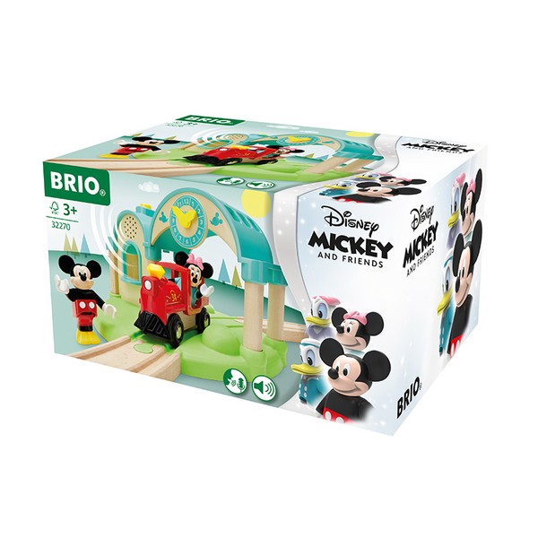 GS/32270"Следващият влак към магичния свят на Дисни заминава точно в 8:15 сутринта!" Внесете допълнителна фантазия в игрите с новата станция на шведската фирма Brio, където компания ще ви прави не кой да е, а самият Мики Маус и неговата любима Мини! Натискайки жълтото копче, Вашето дете може да каже нещо, а после да чуе посланието си към пътниците на гарата.Техническа информация може да намерите *тук*
