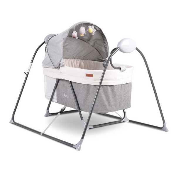 Електрическата люлка има 5 скорости на люлеене. Благодарение на оригиналната си музикална кутия и меки, цветни играчки, Вашето съкровище ще се забавлява от сърце.