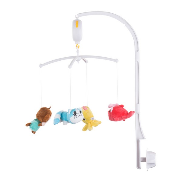 Всяка плюшена играчка се върти над главичката му и го кара да се заглежда, като по този начин играчката развива зрението и слуха му.