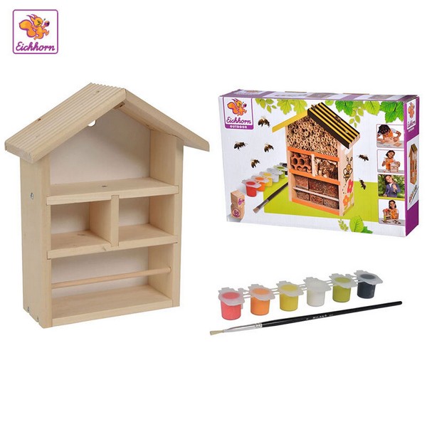 Когато е готова дървената къщичка за пчели на Айхорн я поставете на балкона или в двора.