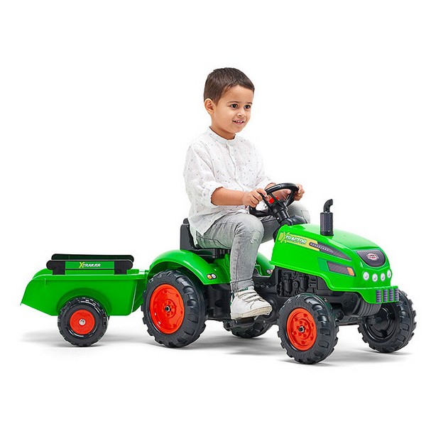 Falk - Детски трактор с ремарке, отварящ се капак и педали - зелен