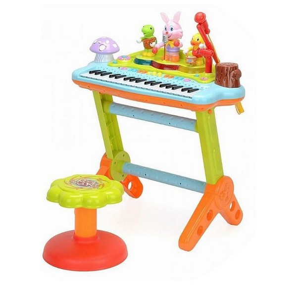 микрофон - използвайки микрофона, вашето мъниче ще може да се почувства като истинска звезда и да изнесе концерт. Животинчетата над клавишите, ще са част от публиката на този концерт и ще свирят заедно с детето;
