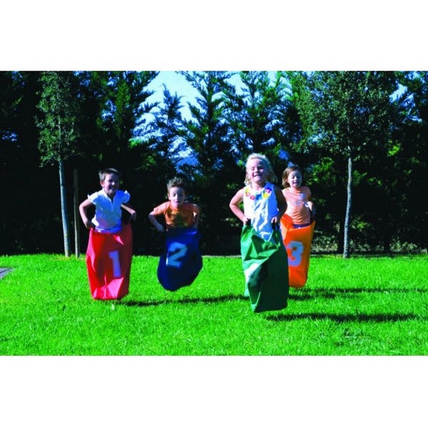 Kомплект от шест чувала с различни цветове, дръжки и номера.