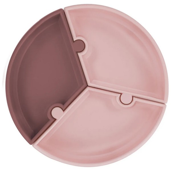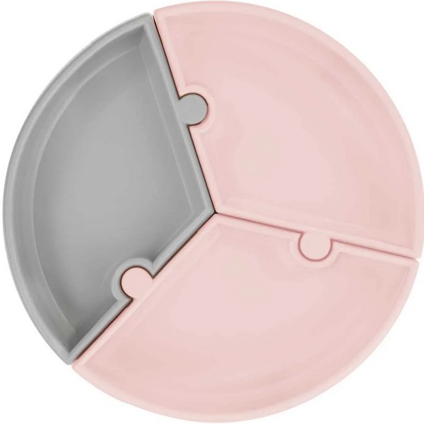 Силиконова чиния Puzzle е съставена от 3 части, които се съединяват в едно цяло, съставяйки една порционна чиния. Всяка една от частите е снабдена с вакуумна основа, която ги държи здраво захванати за повърхността. Благодарение на това, детето няма да може да я обърне и да разсипе храната. В първите месеци на преминаване към допълнителна храна, това допринася за по-лесно участие на семейната трапеза, както е препоръчано от експерти, а също така бебето ще развива двигателните си умения, хранейки се самостоятелно.