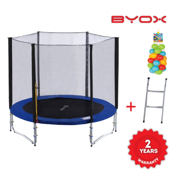 Byox 8FT - Батут с мрежа и стълба - 244 см + подарък топки за игра 100 бр.