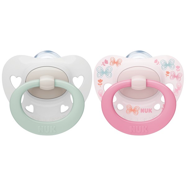 NUK Signature - Биберон залъгалка силикон 0-6 мес. 2 бр. + кутийка за съхранение и стерилизация в микровълнова